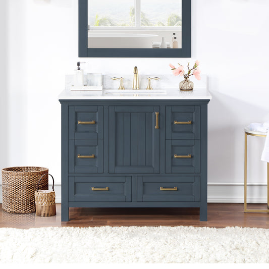 42 Inch Blue Single Sink Bathroom Vanity with Grain White Engineered Stone Countertop - Altair Gazsi 543042-CB-GW-NM