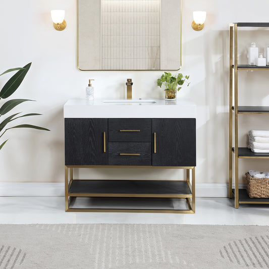 42 Inch Black Oak Single Sink Bathroom Vanity with Grain White Engineered Stone Countertop - Altair Gazsi 543042-BO-GW-NM