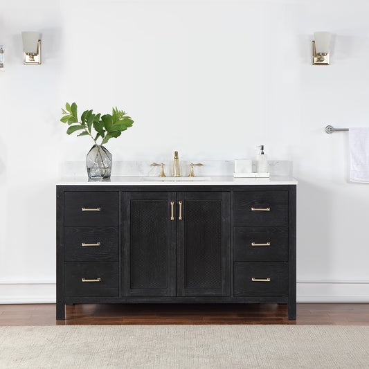 60 Inch Black Single Sink Bathroom Vanity with Aosta White Engineered Stone Countertop - Altair Hadiya 542060S-BO-AW-NM