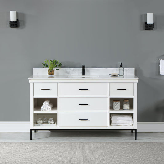60 Inch White Single Sink Bathroom Vanity with Aosta White Engineered Stone Countertop - Altair Kesia 545060S-WH-AW-NM