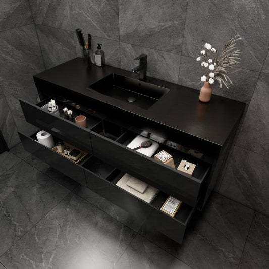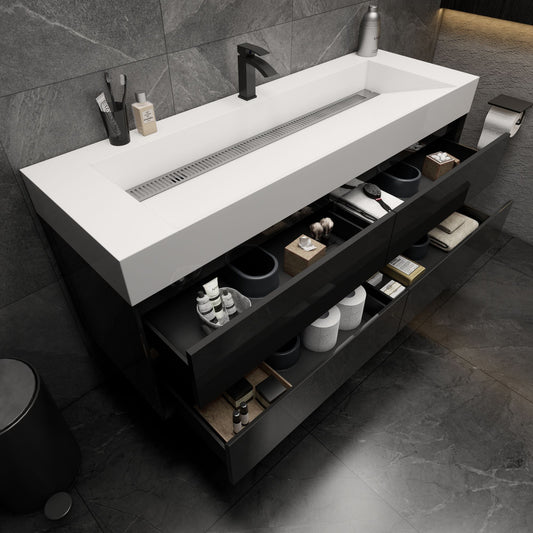 60 Inch Gloss Black Wall-Mounted Single Sink Bathroom Vanity with Acrylic Countertop – MEBO MAX MAX60S-GB