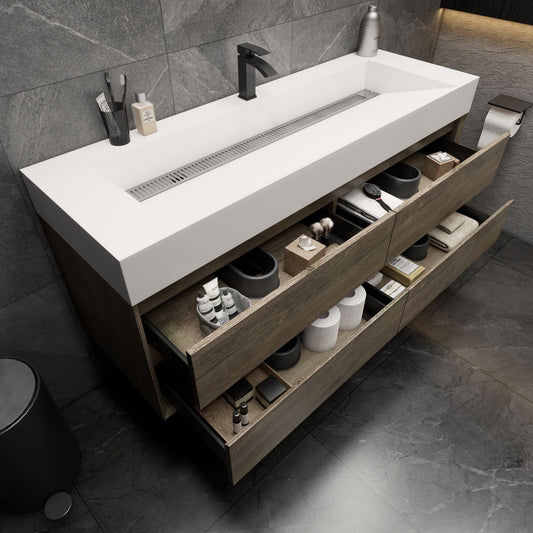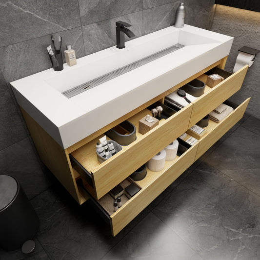 60 Inch Light Brown Wall-Mounted Single Sink Bathroom Vanity with Acrylic Countertop – MEBO MAX MAX60S-TW