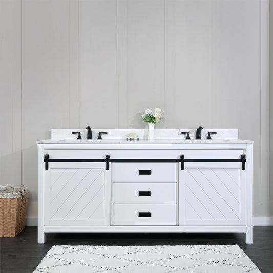 72 Inch White Double Bathroom Vanity Set with Carrara White Marble Countertop - Altair Kinsley 536072-WH-AW-NM