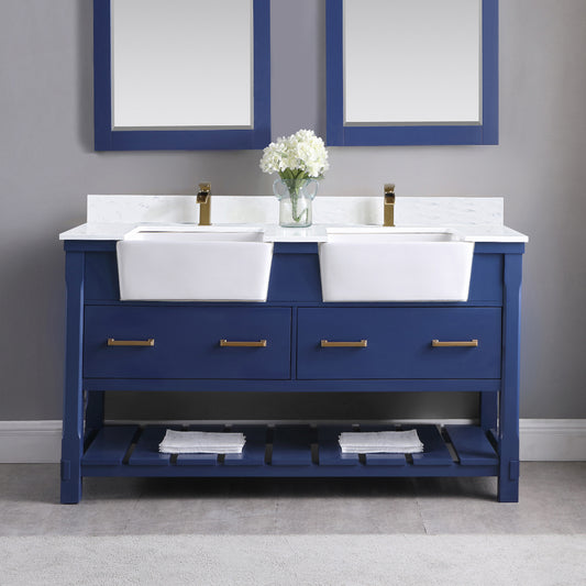 60 Inch Blue Finish Double Bathroom Vanity Set with Aosta White Composite Stone Top- Altair Georgia 537060-JB-AW-NM
