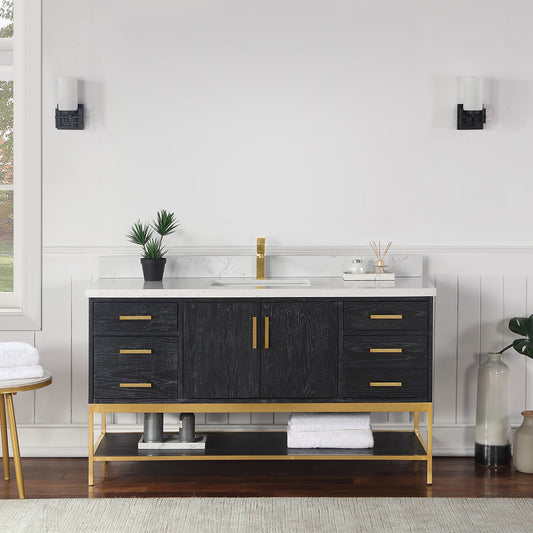 60 Inch Black Single Sink Bathroom Vanity with Grain White Engineered Stone Countertop - Altair Wildy 546060S-BO-GW-NM