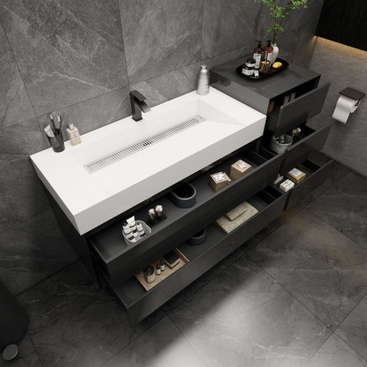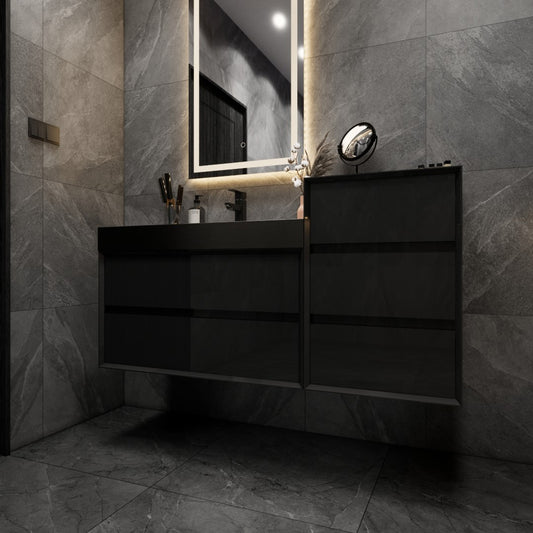 60 Inch Gloss Black Wall-Mounted Single Sink Bathroom Vanity with Acrylic Countertop – MEBO MAX MAX60S-GB