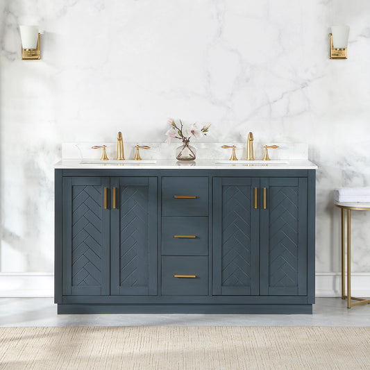 60 Inch Blue Double Bathroom Vanity with Grain White Engineered Stone Countertop - Altair Gazsi 543060-CB-GW-NM