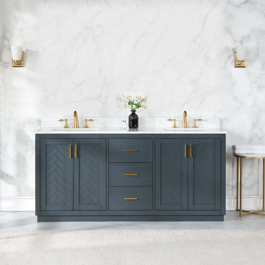 72 Inch Blue Double Bathroom Vanity with Grain White Engineered Stone Countertop - Altair Gazsi 543072-CB-GW-NM