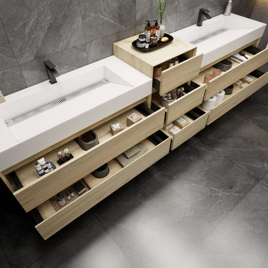 104 Inch Light Brown Wall-Mounted Double Sink Bathroom Vanity with Acrylic Countertop – MEBO MAX MAX104D-TW