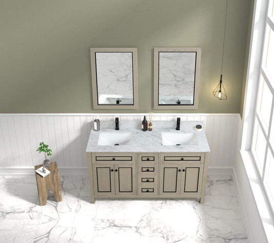 60 Inch Brown Double Sink Bathroom Vanity with Carrara White Marble Countertop – Legion Furniture WV2260-O