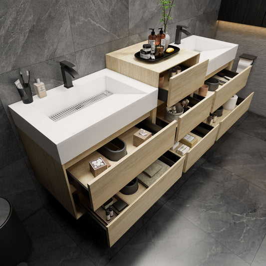 60 Inch Light Brown Wall-Mounted Double Sink Bathroom Vanity with Acrylic Countertop – MEBO MAX MAX60D-TW