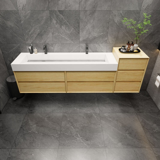 92 Inch Light Brown Wall-Mounted Double Sink Bathroom Vanity with Acrylic Countertop – MEBO MAX MAX92-TW
