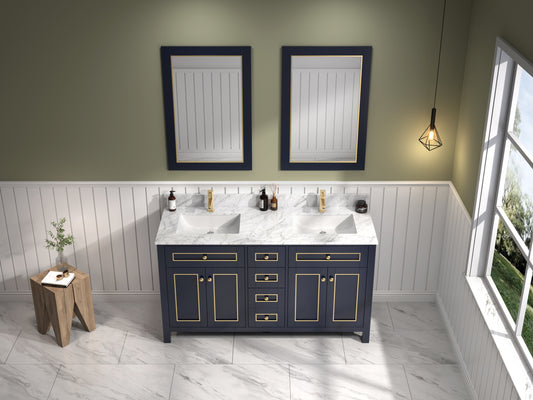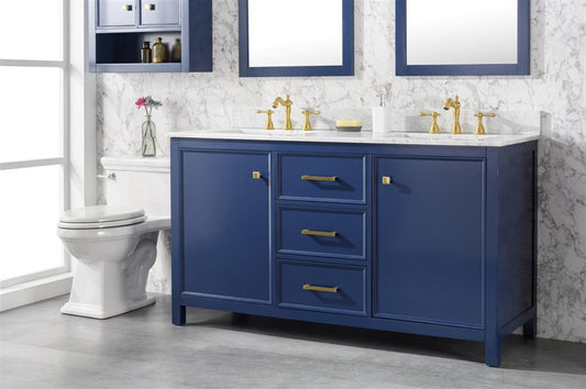 60 Inch Blue Double Sink Bathroom Vanity with Carrara White Marble Countertop – Legion Furniture WV2260-B