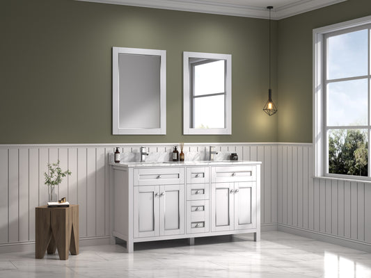 60 Inch White Double Sink Bathroom Vanity with Carrara White Marble Countertop – Legion Furniture WV2260-W