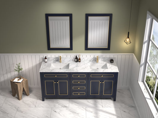 72 Inch Blue Double Sink Bathroom Vanity with Carrara White Marble Countertop – Legion Furniture WV2272-B