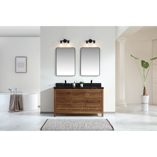 60 Inch Light Brown Double Sink Bathroom Vanity with Black Countertop – Legion Furniture WK2428-60-D
