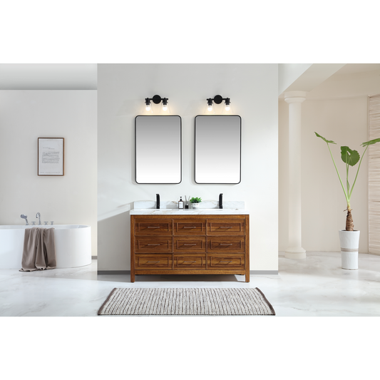 60 Inch Light Brown Double Sink Bathroom Vanity with White Countertop – Legion Furniture WK2428-60-D