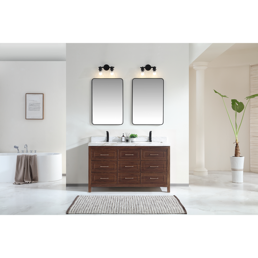 60 Inch Dark Brown Double Sink Bathroom Vanity with White Countertop – Legion Furniture WK2428-60-D