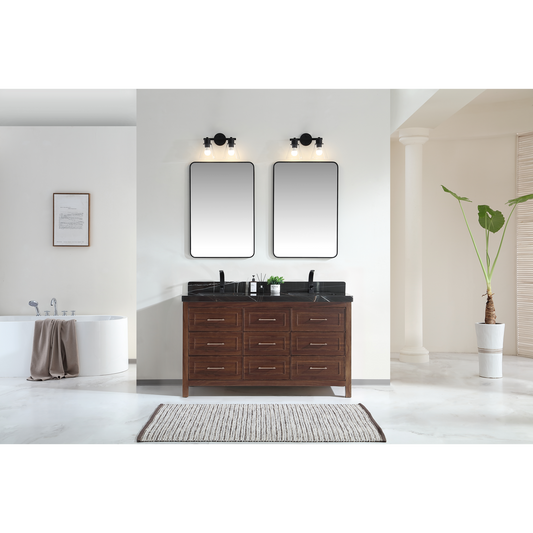 60 Inch Dark Brown Double Sink Bathroom Vanity with Black Countertop – Legion Furniture WK2428-60-D