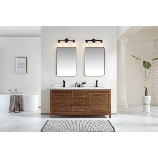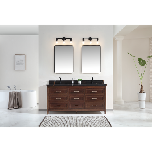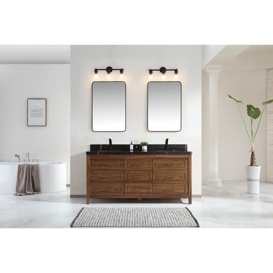 72 Inch Light Brown Double Sink Bathroom Vanity with Black Countertop – Legion Furniture WK2428-72