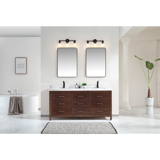 72 Inch Dark Brown Double Sink Bathroom Vanity with Black Countertop – Legion Furniture WK2428-72