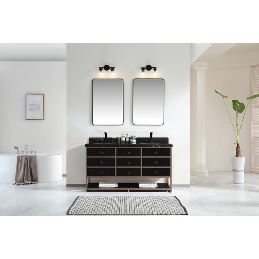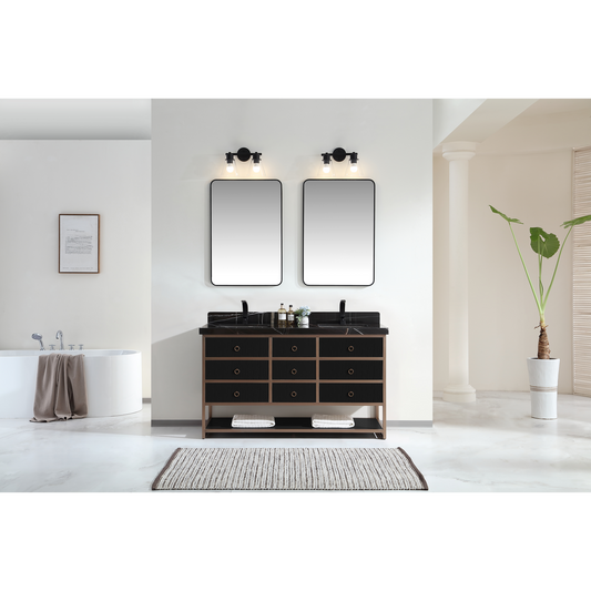 60 Inch Black Double Sink Bathroom Vanity with Black Countertop – Legion Furniture WK2438-60D-BG