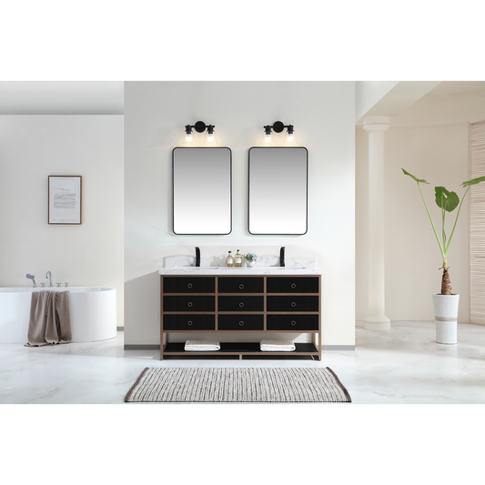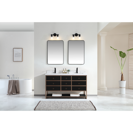 60 Inch Black Double Sink Bathroom Vanity with White Countertop – Legion Furniture WK2438-60D-BG