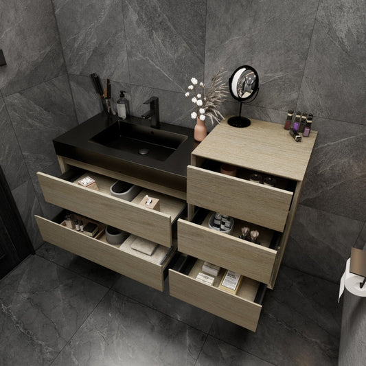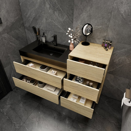 48 Inch Light Brown Wall-Mounted Single Sink Bathroom Vanity with Black Stainless Steel Sink – MEBO MIA MIA48-TW