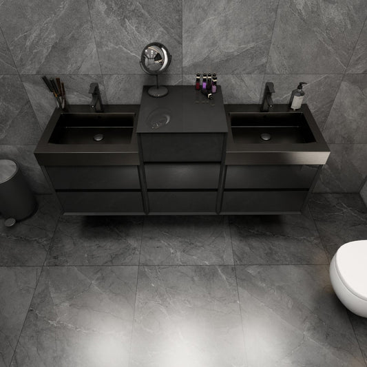 80 Inch Gray Wall-Mounted Double Sink Bathroom Vanity with Black Stainless Steel Sink – MEBO MIA MIA80D-HW
