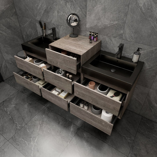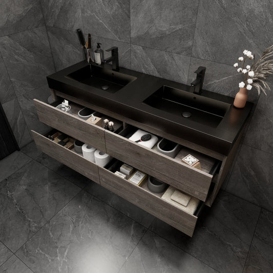 60 Inch Gray Wall-Mounted Double Sink Bathroom Vanity with Black Stainless Steel Sink – MEBO MIA MIA60D-HW