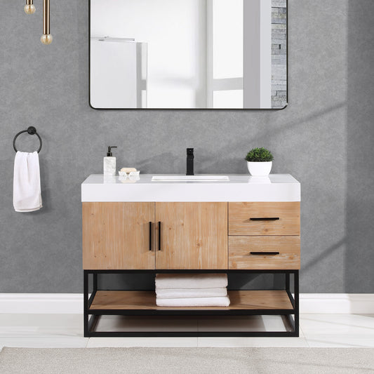 48 Inch Light Brown Single Sink Bathroom Vanity with Grain White Engineered Stone Countertop - Altair Gavino 557048-LB-GW-NM