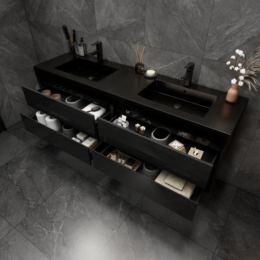 72 Inch Gloss Black Wall-Mounted Double Sink Bathroom Vanity with Black Stainless Steel Sink – MEBO MIA MIA72D-GB