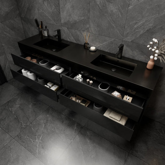 84 Inch Gloss Black Wall-Mounted Double Sink Bathroom Vanity with Black Stainless Steel Sink – MEBO MIA MIA84D-GB