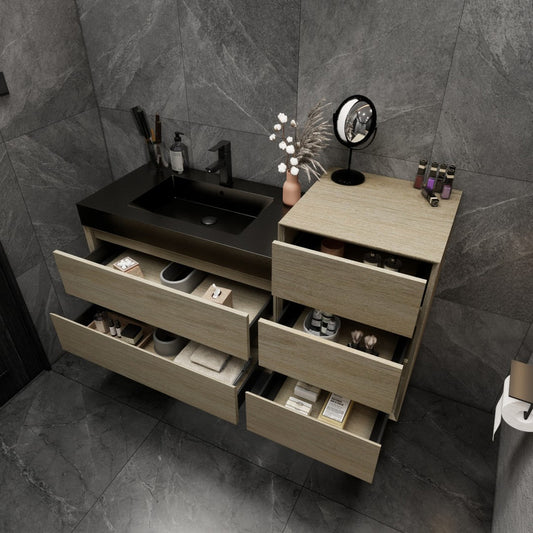 56 Inch Light Brown Wall-Mounted Single Sink Bathroom Vanity with Black Stainless Steel Sink – MEBO MIA MIA56-TW